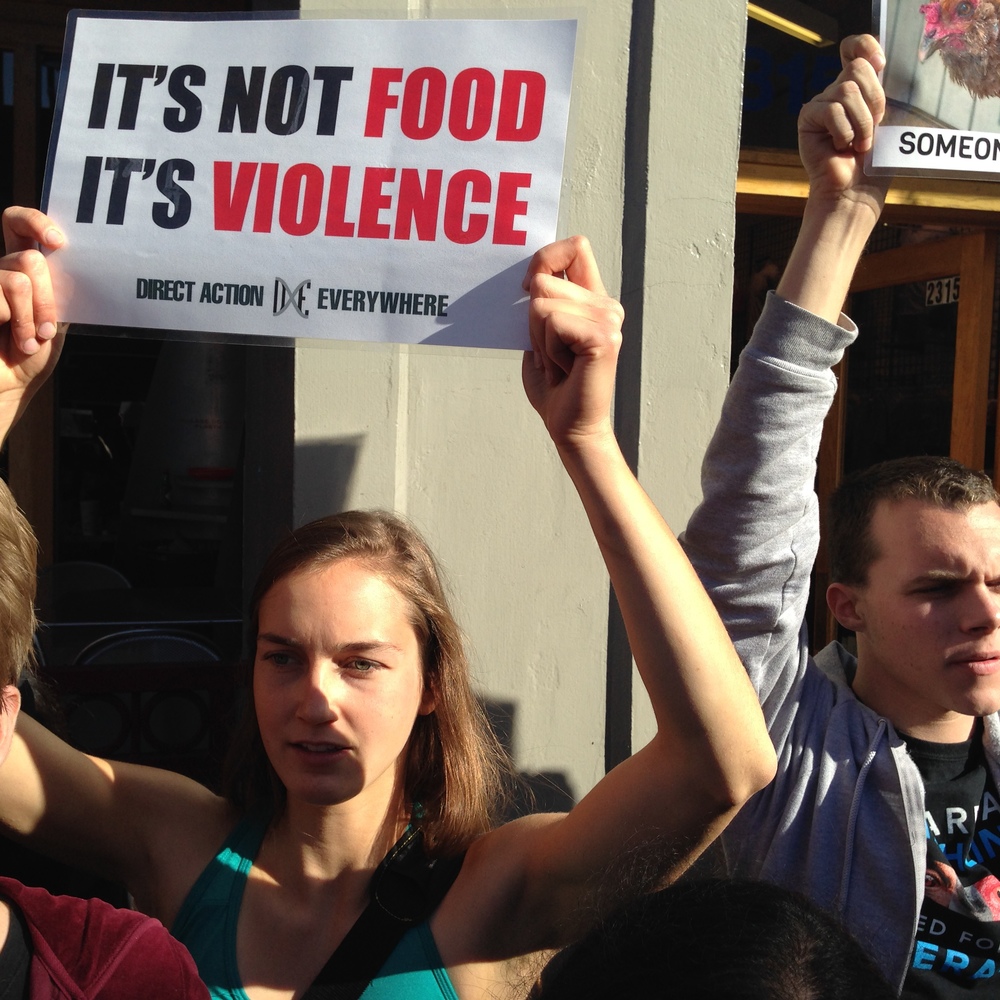 Direct Action Everywhere is a network of animal rights activists working to challenge speciesism throughout society. We use creative protest to challenge the use of animals for food, clothing, experimentation, and entertainment. Visit Direct Action Everywhere on facebook and at directactioneverywhere.com . Follow us on Twitter @DxEverywhere.