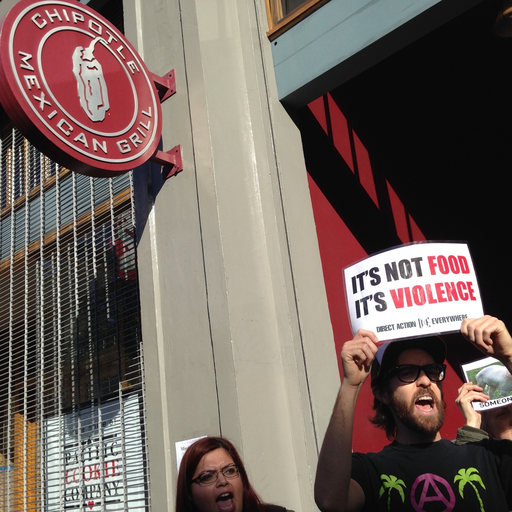 Activists in the Bay Area, San Diego, Phoenix, Chicago, New Jersey, Los Angeles, Houston, Santa Cruz, Vancouver and other cities joined the protest against Chipotle, demanding the company end its support for violence against animals and its misleading marketing.
